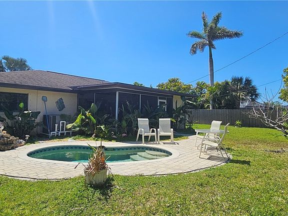 Walk right into value, this home appraised HIGH, ask me for details today! Looking for the best primary Cape Corals most prominent home? Location, must see the home in this prime neighborhood. Essentially located on the St. of Tarpon Point Marina, Tarpon Point, High Tide Social House, Marker 92 Waterfront Bar & Bistro, The Nauti Mermaid Dockside Bar & Grill, The Westin Cape Coral, The Westin Cape Coral, The Westin Spa & Fitness Center, only the finest places Cape Coral has to offer. Don't miss this easy to rent location and all it has to offer! A mile from Cape Coral Pkwy. Close to the bridge into Ft. Myers & on your way to the Gulf Beaches, conveniently minutes away from Yacht Club Beach, many parks, stores, restaurants, markets (local farmer's market every Saturday all year round), and much more. Enjoy a private backyard oasis w/pool to dip in and float on hot days, cold days no worries w/a pool heater perfect for year-round relaxation. Fenced for your fur family. The interior boasts a perfect blend of comfort & convenience, w/Florida charm, crown molding, tile floors, versatile modern updates, including Stainless Steel appliances, and a newer roof, The expansive formal dining area with double sliding doors that open in the center to creates an open, airy atmosphere ideal for entertaining, the garage features built-ins for all your tools and supplies to hide seamlessly out of site including a laundry area with laundry tub to keep all the heat out of the home when in use. Don’t miss your chance to own this exceptional property! Nestled in a quiet, peaceful neighborhood, just around the corner from everything you could need. Ideally located just minutes from downtown Cape Coral’s vibrant dining, shopping, and entertainment options, this home is ideal for tranquility and accessibility. Boosting a variety of modern upgrades that ensure worry-free living, offering an open, inviting floor plan with a spacious french door master suite featuring a walk-in closet and sitting area, dual sinks, and a large, walk-in shower in the master bath, upgraded and offering both functionality and style, two additional bedrooms perfect for family or guests with lots of closet space. The kitchen is beautifully designed with sleek granite countertops and an eat-in bar area perfect for preparing meals or hosting guests. This beautiful 3-bedroom, 2-bath home features a private oasis pool area, a large under-truss lanai with a swing bed or choose to relax in the shade under the large covered sitting area, perfect for outdoor dining, lounging, or entertaining. Whether you're enjoying the pool and Florida's beautiful sunsets, relaxing on the lanai, or exploring the nearby attractions, this home has something for everyone. City Water & Sewer with No outstanding assessments, offering peace of mind for future owners. A New Pool Pump capacitor installed in 2024, NEW A/C and ROOM CARPET in 2021, new dishwasher in 23', NEW wood fence in 2024 to give privacy for all your enjoyment