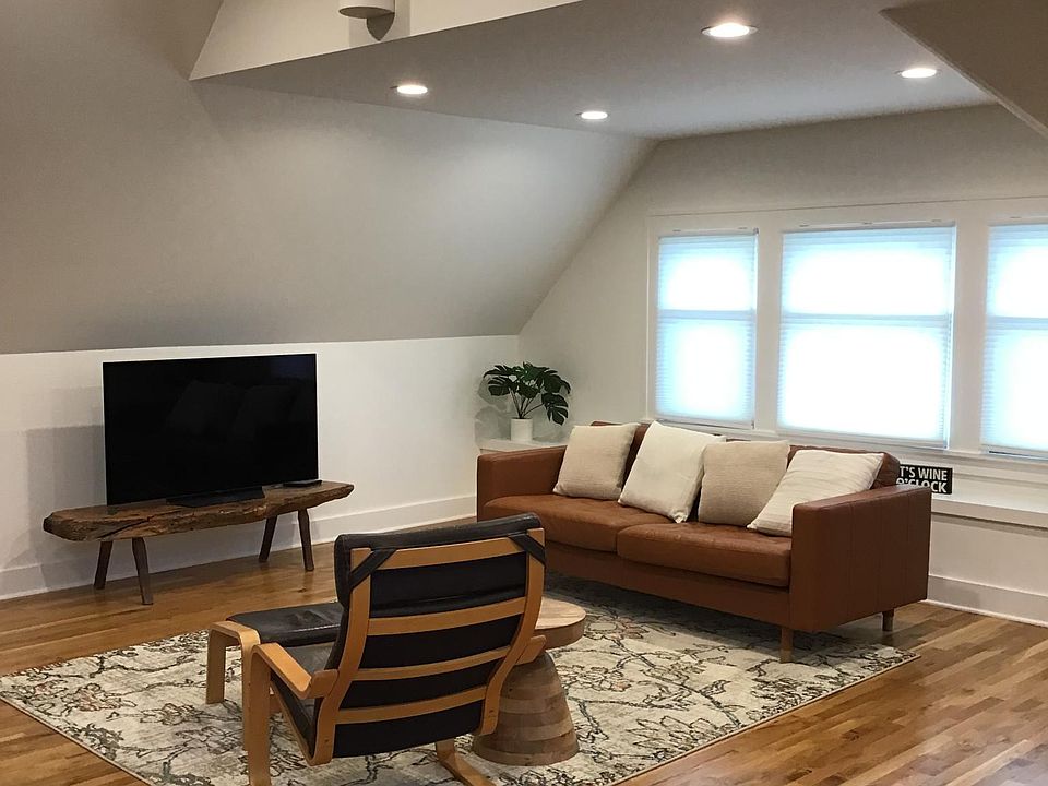 Furnished! Fully appointed open floor plan apartment occupying the entire third floor of a classic Victorian house in Kalamazoo's historic Stuart Nieghborhood. All new appliances, flooring, and countertops. Treetop views in all directions. Rent includes off street parking spot, trash removal, and water.