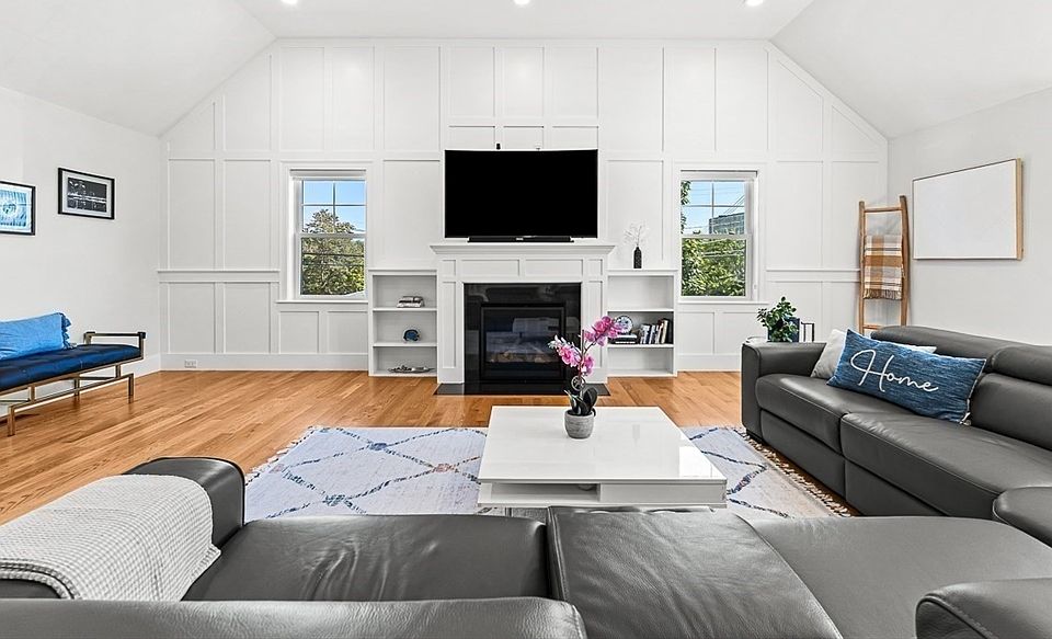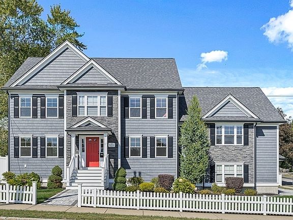 NEWER CONSTRUCTION! This 2020 home showcases 5 beds, 4 baths-4300sf of style & luxury situated on the corner of Loring Ave. The home features high ceilings, hardwood floors & a stunning sunny open floor plan w/ eat in kitchen, center island, custom cabinetry, stainless appliances & walk-in pantry. Formal dining room & dramatic oversized family room will impress, featuring vaulted ceilings, gas fireplace and plenty of windows.The first floor also includes a bedroom suite w/ full bath! Upstairs you'll find 3 spacious bedrooms, including the primary suite w/ walk-in closet & beautiful en-suite bath w/ large shower, tub & double vanity sinks. Additional BR5 & bath on the 3rd fl. The finished lower level offers a family room w/ bar & large media/playroom. A fenced in yard, deck/ patio & direct entry two-car garage complete this home. Enjoy all the area has to offer including McDonald field playground, restaurants, shops, schools, train to Boston, Bike-paths & more! Only 7 miles from Boston!