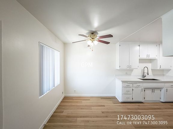 Step into your new one-bedroom apartment in the heart of Glendale! This gem features a kitchen that's as stylish as it is functional, with newly painted and refinished cabinets, sleek countertops, and a range ready for your culinary creations. The bathroom? Freshly updated with a chic new vanity. Modern laminate flooring runs throughout, adding a touch of elegance. Stay cool all year round with a handy wall unit A/C and enjoy the convenience of a dedicated parking spot and extra storage in the carport. With on-site shared laundry, you'll have everything you need for easy, comfortable living. Ready to make this fantastic place your new home? Schedule a viewing today! GPM REALTOR - CA DRE 01995788 Ceiling Fan Laminate Flooring Storage Stove Water