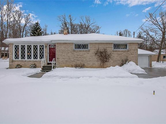Welcome home to this beautiful 3 bedroom, 3 bath brick ranch on a large 1.4 acre lot set back from the street. Great floorplan with large vinyl replacement windows throughout provides plenty of natural light. Kitchen has built-in oven/range installed in 2019 and includes all appliances. Newly finished, dry basement adds tons of extra living space and has full bathroom, living area, bar, office, and other room! Large 2+ car garage also has overhead door leading to backyard. Huge new concrete driveway installed in 2019 provides plenty of room for parking. Park-like backyard is partially wooded and features newer pool and deck, shed and large patio installed in 2019. Central A/C. Showings begin immediately. Any offers will be reviewed Friday, 2/26.