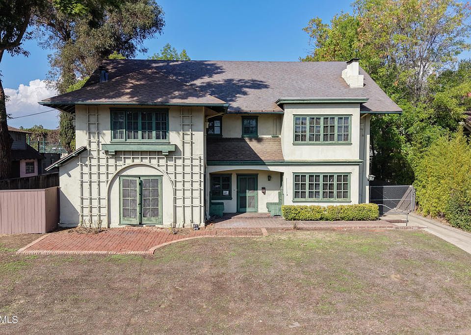 Welcome to 237 West State Street, built in 1912 as noted in the National Register of Historic Places. This two-story English Craftsman style residence, located in the Pasadena Avenue Historic District, was designed by architect Frederick Louis Roehrig and built by Louis Pomeroy. It sits on a raised berm on the north side of State Street with a primary side-gabled roof with open eaves, exposed rafter tails and wide, exposed roof rakes with extended purlins. There are a pair of two-story, front-facing bays at the east and west ends of the front elevation. The western bay has a shallow hipped roof with boxed eaves, a wood French door centered on the first level, and a ribbon of four six-pane wood casement windows. There is an applied trellis on this portion of the façade. The eastern bay is a square, through-cornice shed-roofed wall dormer with a ribbon of four wood casement windows at both the first and second levels. An inset entry porch between these two bays has a small flared shed roof and a brick pad; the skylight in the hallway floods the space with natural light; the single-leaf door is wood with twelve inset panels and a wooden screen door. There is a built-in wood bench on either side of the entry porch. Utilities have been off for an extended period of time and will not be activated for inspections. Come tour this significant historical property in the heart of Pasadena!