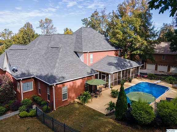 MUST SEE 5 BED 3 1/2 bath, great location, beautiful neighborhood, convenient location to HWY 53 and Redstone Arsenal. Spacious Sunroom overlooking professional landscaping, 16x32 salt water pool with fiber optic light, and new liner. Stunning kitchen with tile backsplash with granite counter tops with double ovens and built in microwave. Elegant master bedroom with luxurious bathroom with walk-in stone shower, his/her closets. Bonus/Game room with built in bar that has double taps and built in refrigerator. 4 bedrooms with walk-in closets on 2nd level. Large storage under house. Updates New roof 2017, HVAC 2019, new double ovens.