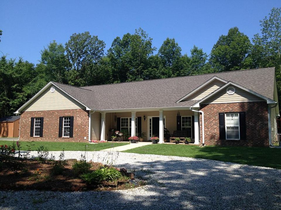 This 3 yr. old home offers 9 ft. ceilings, open floor plan, large kitchen, split bedroom plan, 3BR/2BA, master bath with his and her closets, garden tub and shower, concrete play area, storage shed, and more on 8.6+/- acres.
