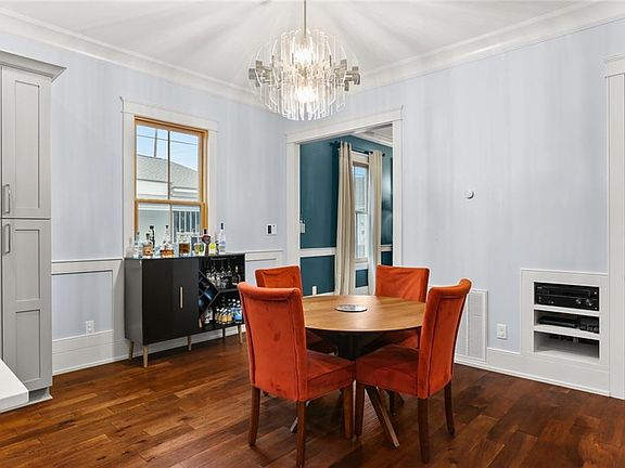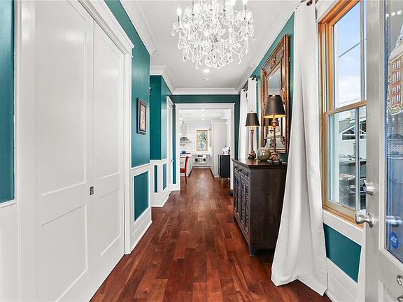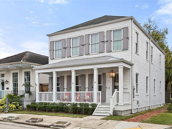 Exquisite, like-new home in the Irish Channel surrounded by new construction and newly renovated homes! Corner lot with an inviting front porch and entry. Big open floorplan, wood floors and 10 ft ceilings on both floors. Kitchen has large marble island with bar seating, Thermador and Bosch appliances, pot filler, and ample cabinet space. Living room equipped with surround sound, electric fireplace and built-in wine/beverage fridge. 1 bedroom and full bath downstairs. Upstairs includes sitting room, laundry closet with storage, 2 bedrooms, full bath, and primary suite. Primary bedroom has 2 walk-in closets and luxurious bathroom featuring soaking tub and walk-in shower. Home is only 4 years old and only 1 family has occupied. Off-street parking in the back, or use as a backyard. Termite contract, flood zone X.
