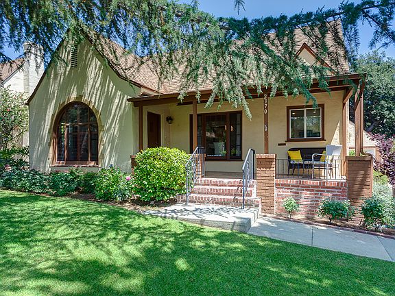 Delightful English cottage features three bedrooms, two and a half bathrooms, situated on a beautiful tree-lined street in historic Altadena. Built in 1928, welcoming front porch & entry leads to formal living room with hardwood floors, picture window and charming fireplace. Large formal dining room off the kitchen overlooks the expansive front yard. Eat-in gourmet kitchen features stainless steel appliances, recessed lighting, stone counter-tops, tile backsplash & breakfast nook. Laundry /utility room conveniently located off the kitchen includes exterior access & tank-less water heater. Half bath and additional storage located in the hallway. First bedroom includes a ceiling fan and large closet. Dual master bedrooms situated in the back of the home feature tastefully updated bathrooms. Additional interior appointments include hardwood flooring, central air-conditioning & dual pane windows. A long driveway leads to a detached two-car garage & private backyard, perfect for entertaining. Lovely architectural details throughout complete this wonderful home.