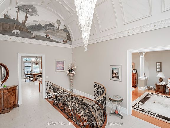 Soaring ceilingsCrown mouldingCoffered ceilingsDecorative pillarsSunken family roomCozy gas fireplaceSpacious kitchen