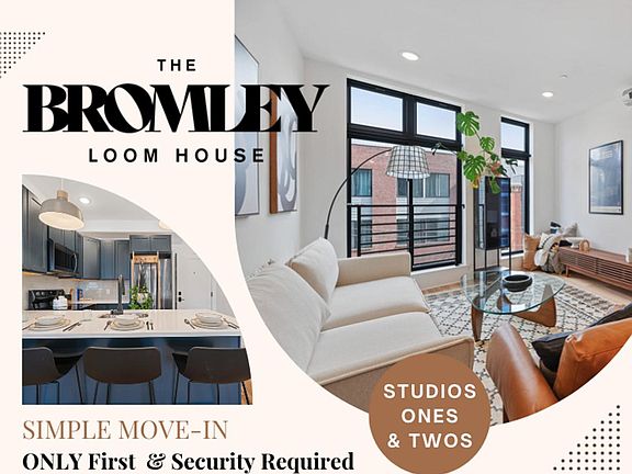 The Bromley Loom House is an exciting new development tucked beside The El in the vibrant neighborhoods of Fishtown and East Kensington. This building has been thoughtfully designed, from the interior of the units to the boutique gym and welcoming entryway. With the name as a nod to the area's working-class history, this site was once the Looming and Dye House of the John Bromley & Son's Carpet Manufacturing. It offers a variety of spacious units including 1-bedroom, 2-bedroom, and studio options, allowing you to experience quintessential urban living.