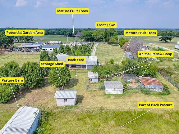 TIME TO GET OUT OF THE CITY!!! Looking for the perfect HOMESTEADING property? This is it! NO RESTRICTIONS or HOA but still close to town. This stunning gated 3.54 acre estate (MOL) features a beautifully updated 3 or 4 bedroom, 2 bathroom home, perfect for building a sustainable lifestyle or just creating a peaceful retreat. The 4th bedroom offers an optional office/studio/bonus room. Enter this updated home from the large covered front porch into an oversized entry/foyer. Continue into a spacious living room with tall ceilings with a wood beam & wood floors creating a warm & welcoming atmosphere. The living room is open to a huge dining room with built in cabinets, exterior french doors & lots of natural light. The kitchen has been updated to include all new Samsung Suite Energy Efficient Appliances, granite countertops, single basin sink, new faucet, & upgraded cabinet hardware. The kitchen opens into the laundry/mud room with tons of cabinets & pantry for storage. The huge covered back patio invites you to enjoy evenings relaxing or entertaining guests. All bedrooms are a nice size with large closets.The property boasts a versatile tandem 2-car garage, providing ample space for vehicles and storage. Outside, you’ll find multiple fenced areas with shelters designed for various animals, ensuring security and comfort for your livestock or pets. Garden enthusiasts will appreciate the open spaces separate from the livestock areas for growing each seasons harvest. The presence of multiple fruit trees offers both beauty and the potential for homegrown fruit harvests. You can cultivate your own vegetables, fruits, flowers, and livestock embracing a sustainable lifestyle. This homestead combines modern comforts with the charm of rural living and the convenience of town nearby, making it an ideal setting for those looking to embrace a self-sufficient lifestyle Situated minutes to I35, halfway between Dallas & OKC. This home has too many updates to list!