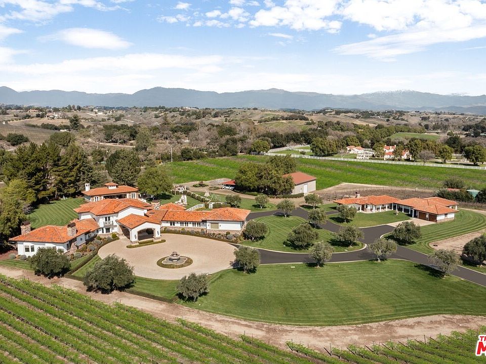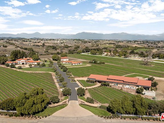 Nestled on just under 25 acres of premier wine country, this exceptional Santa Ynez vineyard compound offers a blend of luxury, privacy, and viticultural prestige-- all nestled behind gates, and ripe with opportunity for a vintner to continue its legacy. Ideally located just a short distance from the charming town of Los Olivos, and Mattei's Tavern, The Vincent Vineyards Estate is well positioned for high visibility on the scenic SR-154. The heart of the property is a meticulously built 6-bedroom Italianate villa, thoughtfully designed with timeless elegance and panoramic views of the surrounding vineyards and expansive backyard and grounds. This main residence features luxurious en-suite bedrooms, a breakfast room, an elevator, an exercise room, and a primary suite with dual closets and spa-like bathrooms. Complementing the main home are two well-appointed guesthouses featuring 3 additional bedroom suites, spacious living areas, and gourmet kitchens, ideal for extended family or visitors seeking privacy and comfort. A haven for wine enthusiasts and collectors alike, the estate boasts 14 acres of meticulously maintained and imported Bordeaux varietals, supported by a fully equipped onsite winery and tasting room - perfect for private label production or continuing its commercial operation. With dozens of 90+ pt wines and countless accolades, this is an incredibly rare opportunity for a wine enthusiast to truly own and experience the quintessential 'Vintner Lifestyle'. Additional amenities include a stunning pool pavilion and cabana with chef's kitchen and bar, ideal for relaxed entertaining, and 7 garage spaces for the true car enthusiast. Positioned in one of the most coveted corridors of the Santa Ynez Valley, this estate offers the perfect blend of luxury living and agricultural opportunity, just minutes from acclaimed restaurants, tasting rooms, and the vibrant lifestyle of Los Olivos and Santa Ynez.