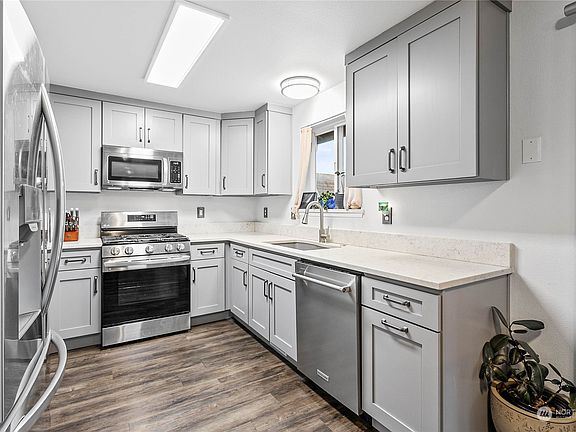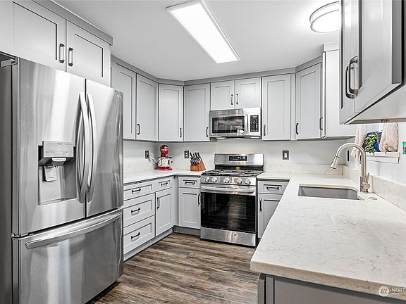 Exceptional remodel complete! Large spacious kitchen has room for two chefs and sparkles with new quartz counters, composite sink, brand new top quality designer cabinets, new stainless appliances - his kitchen is right out of a model home magazine! Sit back and enjoy many years of care free living. In addition to the new kitchen, brand new furnace in 2022, new mini split 2023, new luxury vinyl flooring, new tiled bathrooms and the most plush carpet you've ever set foot on in all bedrooms! Walk to the great schools and parks nearby, stretch out in the sunny and spacious fenced backyard or plant that organic garden you've always dreamed of - full sunshine all day makes this a gardeners delight + nice 2 car garage and just minutes to I-5!