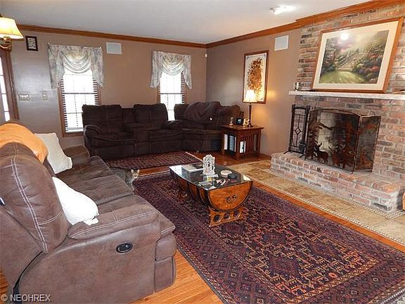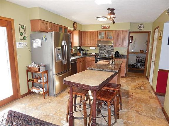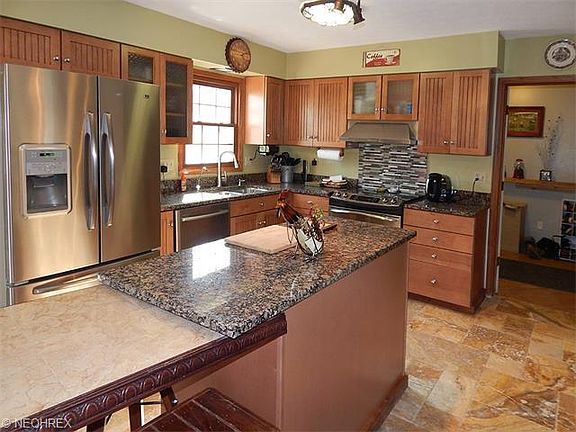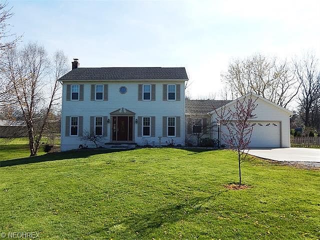 Spectacular Colonial in Sharon Township with secluded Paradise in your own backyard. Home boasts updated Kitchen with maple cabinets, Travertine tile floors, granite and stainless appliances. Formal dining room with marble floors, cozy family room with hardwood floors and wood burning fireplace. 4 spacious bedrooms with updated Baths. Enter the finished, walk-out basement thru a cool, barn style sliding door. Slider off kitchen to deck with outdoor fireplace, fenced yard. 30x30 detached garage with elec, concrete and drain. Back of property has park like setting with pond, Gazebo. Updates include roof 2006, windows 2012, furnace - A/C 2013. Country setting with excellent highway access!