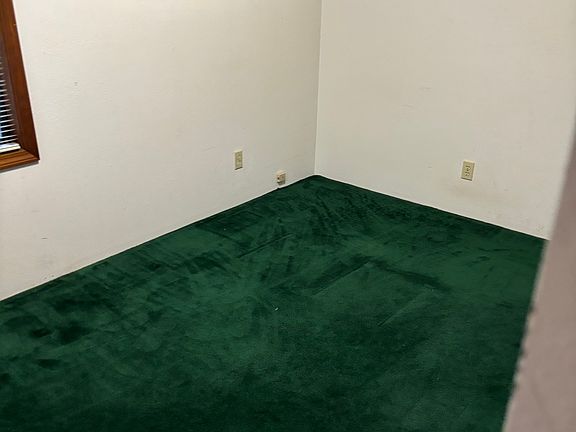 The room features two windows that allow natural light to flood in, creating a bright and inviting atmosphere. A lush green rug covers the floor, adding a soft, earthy touch.
