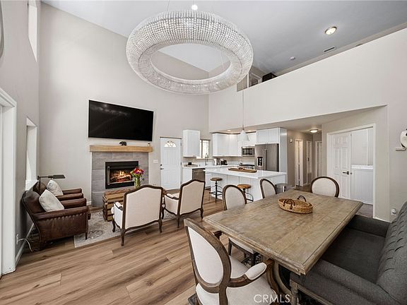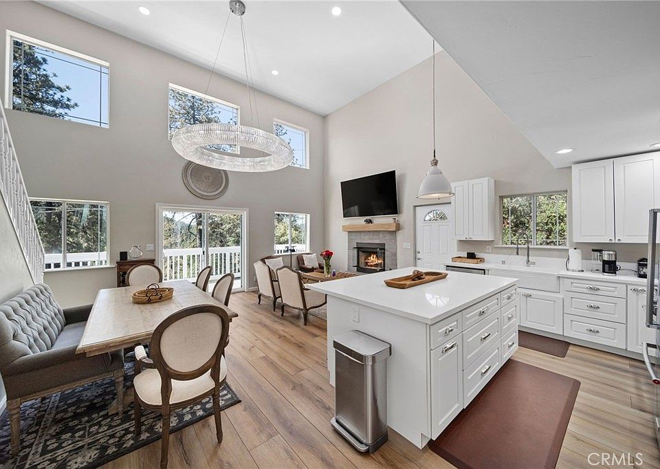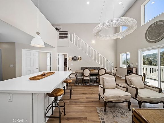 Escape to the ultimate luxury mountain retreat with this stunning all-season home offering unparalleled views and exceptional living spaces. Recently renovated, the house features new luxury vinyl flooring throughout and a chef's kitchen complete with a spacious island and top-of-the-line KitchenAid appliances, including a refrigerator. Nestled on a private hillside with expansive 180-degree mountain forest views from its large south-facing balcony, this home ensures breathtaking sunrises and sunsets are a daily delight. Enjoy the serenity of no neighbors to the left or behind on the expansive 6000 square-foot lot, perfect for adding additional space or creating a captivating backyard oasis. Inside, high ceilings and ample windows flood the interior with natural light, complementing the cozy ambiance of the gas and wood-burning fireplace in the living room, adorned with a striking Restoration Hardware chandelier. With three bedrooms plus a loft, two featuring expansive walk-in closets, and luxurious master and guest bathrooms recently remodeled with an extra-large Jacuzzi tub, comfort and style abound. Additional highlights include AC and a new energy-efficient AC condenser ready for installation, plentiful parking at the end of a quiet cul-de-sac, and proximity to local amenities such as the newly reopened Goodwin’s grocery store just a five-minute drive away. Enjoy outdoor adventures with Lake Gregory just five minutes away, offering paddleboarding, kayaking, trout fishing, Duffy boat rentals, and more, while local bars and eclectic shopping are also within a short drive. Embrace mountain living at its finest in this meticulously crafted retreat, where every detail invites you to relax, unwind, and make this exceptional property your new home. Washer and dryer are included for added convenience, and with only a 20-minute drive through picturesque mountain roads, you’re home from the bustling city life of LA or Orange County in just an hour, making this the ideal blend of tranquility and accessibility.