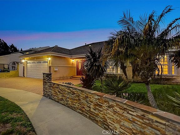 Welcome to this stunning, completely rebuilt in 2004, 4-bedroom, 2.5-bathroom ranch style house nestled on a peaceful cul de sac. This home boasts an open concept design, custom finishes, and striking vaulted ceilings that create an inviting and airy ambiance. Go into the spacious kitchen featuring stainless steel appliances, an abundance of countertop space, skylights, and natural light flooding the heart of the home. The French doors beckon you into the dining room and living room, seamlessly connecting the indoor and outdoor spaces. The brilliantly designed layout offers two guest bedrooms on one side and a primary bedroom plus an additional bedroom/office on the other, all on a single level. This home also features central HVAC, elegant tile, and wood flooring throughout. Relish the convenience of a direct access two-car garage with a storage area, along with two parking spaces in front of the garage. The backyard serves as an ideal entertaining space, complete with privacy bamboo and a fully fenced yard, providing both seclusion and charm.