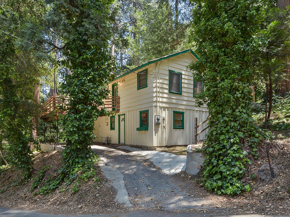 This charming home sits on two street to street lots located in the heart of Crestline! Very close to downtown and Lake Gregory! You enter on the bottom level that has two bedrooms, a large bonus room, one of the bathrooms and the laundry facilities. Upstairs has the living room area with beautiful vaulted wood ceilings and wood walls for the true cabin feeling, the kitchen, dining area, main bedroom and the second bathroom. There are stairs off the back deck to the street behind the house for extra parking.