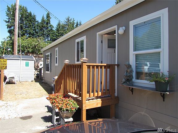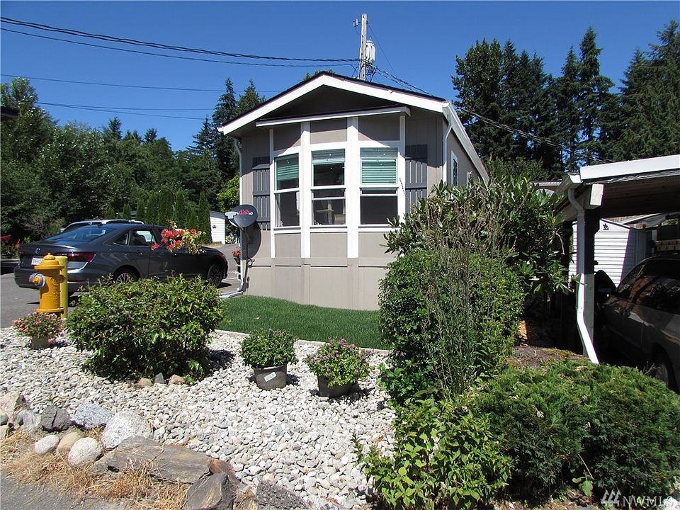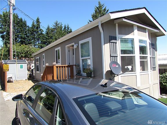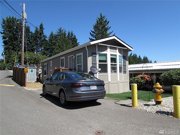 Well priced for a 3 y/o Mfg. Hm. with quality, modern features. All Age Park on Locust way within minutes of Kenmore/Canyon Park and UW campus. Featuring a 2017 Flettwood w/ 560 Sq Ft w/1 Bdrm & 1 Bath, t/t wall finish, nice soliad wood cabs, washer/dryer and all appliances stay. Baywindow of Living room faces south and decent sized bedroom/ bath, across street from clubhouse. Vacant and Move in ready. Lot rent is $850.00 ( W-S-G avg $75.00 p/m ). Home is situated on corner lot at top of a hill.