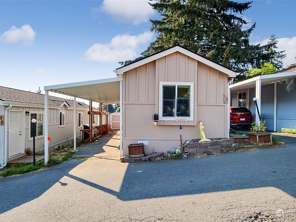 This 2018 singlewide 2 Bedroom 1 Bath is ready to make your own home. It is in nice all age park with club house and pond in a quiet area. This home is in a prime location in close driving distance to freeways, restaurants, shopping, and other recreational spots! Walking distant to Elementary and Middle Schools seller is giving 4K credit toward walls repair and window coverings. New carpet in bedrooms. Owner installed loft in the living room, owner will leave it unless buyers wants it removed.