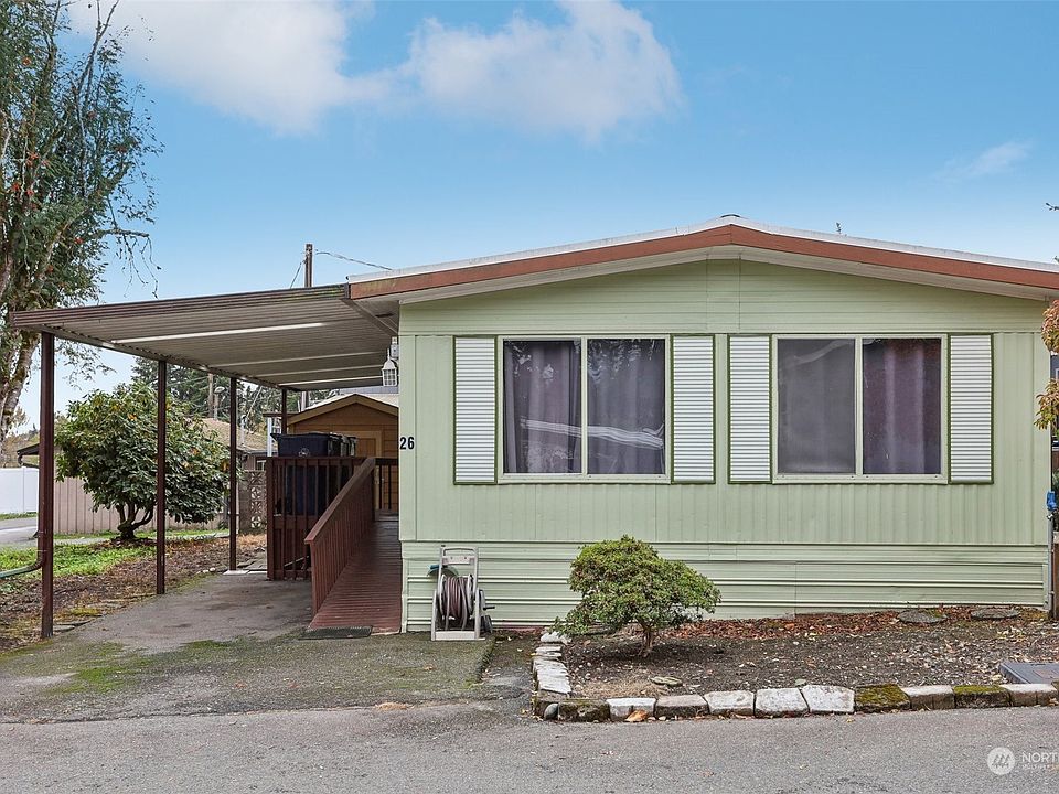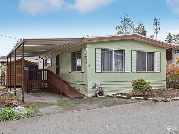 Convenient location at Country Club Estates, an all ages park. Perfect Bothell location close to schools, restaurants, freeway access and amenities. This great home is situated in a prime space within the community on a corner lot, and on lot storage shed. The roof is only four years old. This two bedrooms, one bath home has large windows and skylights. Nice Kitchen, Dining area and living room. Newer shed and furnace.