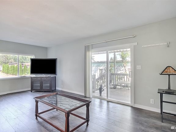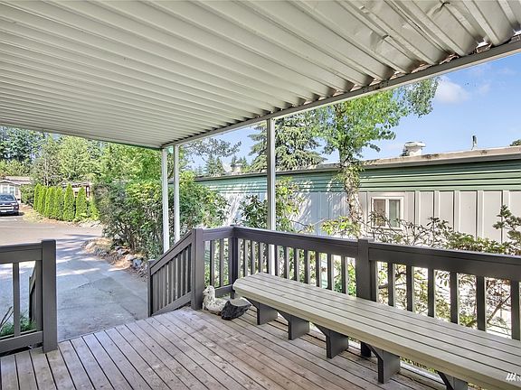 Amazing renovated affordable double-wide located in All Ages Country Club Estate Park! This home is in a prime location nestled off the street but in close driving distance to freeways, restaurants, shopping, and other recreational spots! This home has parking for two cars, a covered deck and beautiful patio space for outside dining. Nice clean interior, 2 bedroom, 2 bath. Primary bedroom has a substantial closet and a half bath. Beautifully updated main bathroom, newer floors and new windows that let in plenty of natural light. Private backyard with storage shed.