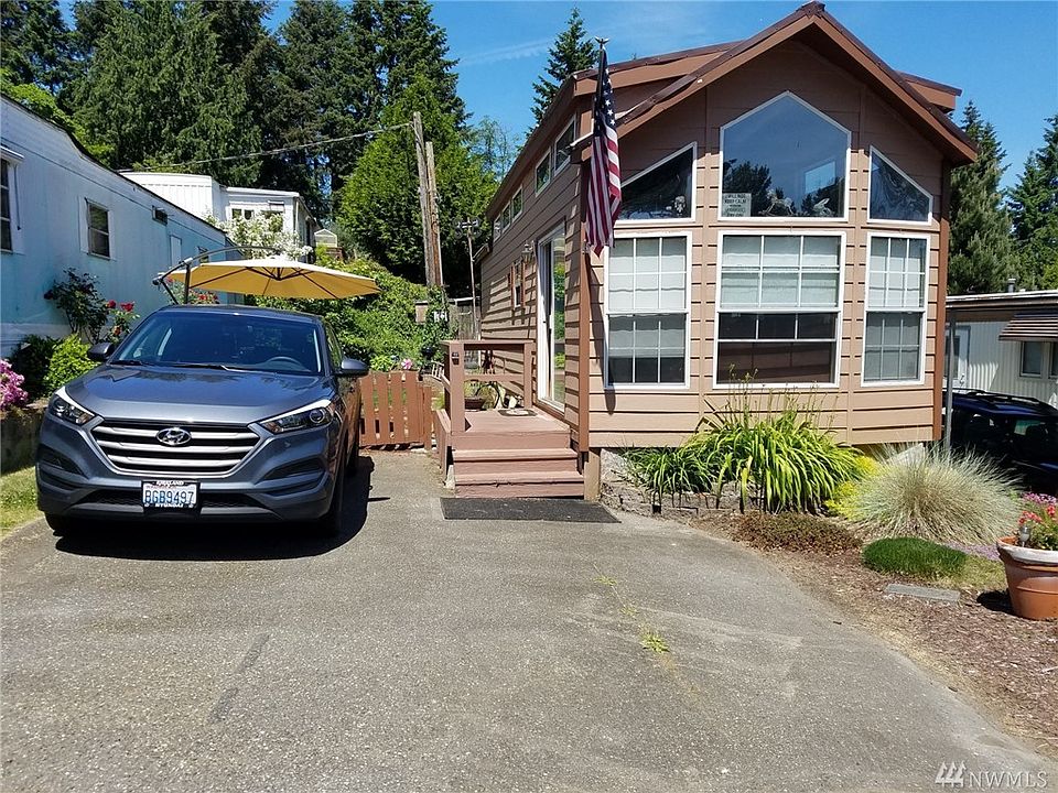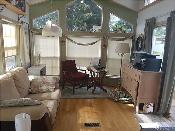 55+ Community and must be approved by management. Custom Built Park Home with 3 bay windows and tons of light. Living room has Oak Hardwood floors, bay window and vaulted ceiling. Kitchen has good storage, gas range/oven, apt. size dishwasher and full size refer. Combo wash/dryer. All custom built-ins in the bedroom. Oak floors, vaulted ceilings and bay window. Custom built closet and murphy bed. Beautifully landscaped with a patio, grass, garden and a 8x10 storage shed. Loft area is a bonus