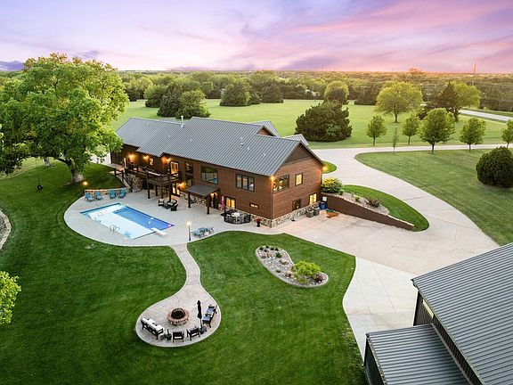 Welcome to your own slice of paradise on 4 gorgeous acres! This one-of-a-kind custom home is the perfect blend of luxury, space, and pure fun. Dive into summer with a stunning pool overlooking a peaceful pond where turtles sunbathe and eagles soar—yes, it’s as magical as it sounds. Step into the heart of the home—a dream kitchen designed for both the chef and the entertainer. Featuring beautiful soapstone countertops, a gas stove, a walk-in pantry, custom cabinetry, it opens seamlessly to a dining room with jaw-dropping views of the pool and tranquil pond. Whether you’re hosting holidays or a casual cookout, the layout is flawless. The drop zone off the garage keeps life organized, and the open-concept design is filled with natural light, thanks to walls of windows that frame the outdoors like artwork. Soaring ceilings with wood beams add rustic elegance, and the cozy stone fireplace is perfect for cooler nights. The main floor offers 3 spacious bedrooms with massive closets, plus a dedicated office—ideal for working from home or handling business in peace. Upstairs, a private bonus suite with its own full bath makes the perfect guest hideaway or teen hangout. The walk-out basement is an entertainer’s paradise: a full bar, a spa room, a workout room, hidden storage, and an unfinished bedroom with the potential for a Jack-and-Jill bath. And just steps from the pool? A convenient bathroom to keep the party flowing without tracking through the house. Get out…side!!! The bug deterrent system keeps summer nights comfortable, and the oversized circle drive means you can park as many cars as you have friends. And the shop? It's big enough for all your toys and pick-up soccer matches—plus additional side storage for even more gear. Whether you’re sipping morning coffee as the sun rises or unwinding with a glass of wine at sunset, this home is truly something special. Come experience the fun, freedom, and beauty of your next forever home!