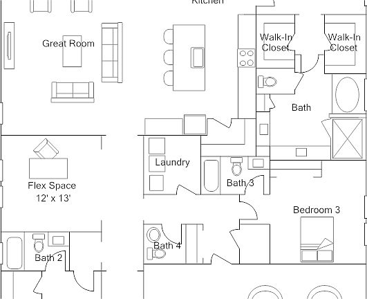 This single-story home offers an open living design joining the Great Room, dining room and kitchen for low-maintenance living. The Great Room opens easily to a covered terrace for outdoor leisure while a den and two bedrooms offer versatility. The owner's suite includes an en-suite bathroom with a Roman tub, perfect for relaxing.