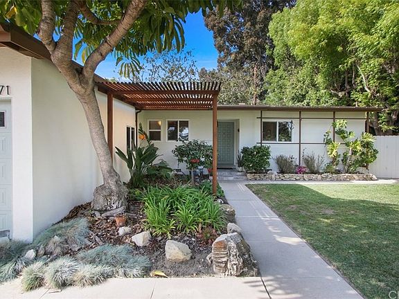 Tucked at the end of a cul de sac around the corner from highly rated schools, this charming Los Altos ranch home is updated and move-in ready. The front yard artfully combines arid climate landscaping, flowering plants, and a lawn, and there's the potential for RV parking at the side of the 8,130 sq. ft. lot. Light neutral tones and updated flooring create a tranquil feeling throughout the home. All three bedrooms are spacious and both bathrooms have been remodeled and enhanced with decorative tile and new fixtures. The large living room flows into the dining room and has an open counter connecting it to the kitchen. Recently remodeled, the kitchen features white shaker style cabinets, quartz countertops, a subway tile backsplash, recessed lighting and a stainless steel farmhouse sink. Just off the living and dining room is a gorgeous enclosed sun room with high beamed ceilings, floor to ceiling windows, and a sliding glass door, offering access and views to the lush, expansive backyard. The wrap-around yard has a newer deck with above ground hot tub and lush mature landscaping, creating the perfect private outdoor retreat. Though you're close to schools, shopping and restaurants, you'll feel like you're miles away. This home has numerous upgrades, including central heating and dual pane windows.