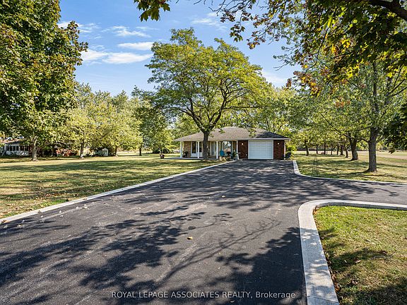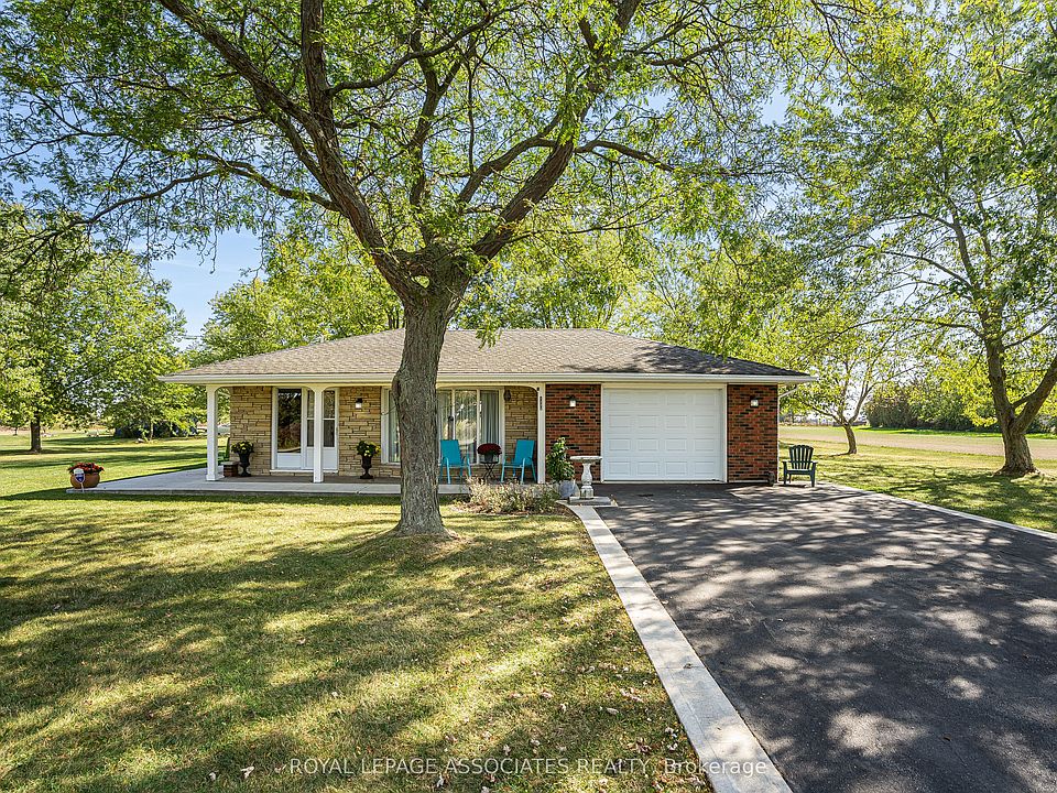 Set on 10 private acres in Rural Glanbrook, this well-kept 3-bedroom country bungalow/split offers the peace of open fields with city conveniences minutes away. A long paved driveway leads to an attached garage and a welcoming front porch. Inside, bright living/dining spaces flow to a functional kitchen; original oak hardwood (under broadloom) adds character. Three comfortable bedrooms share an updated 4-pc bath with quartz vanity. The lower-level family room with gas fireplace is perfect for movie nights, with laundry and generous storage in the balance. Enjoy evenings on the concrete patio overlooking wide-open greenspace. Private well &septic, vinyl thermal windows, high-efficiency gas furnace, tankless water heater and a generator transfer switch provide year-round comfort. A rare opportunity-room for gardens,hobby pursuits, or a future shop-just north of Binbrook and close to Hwy 56.