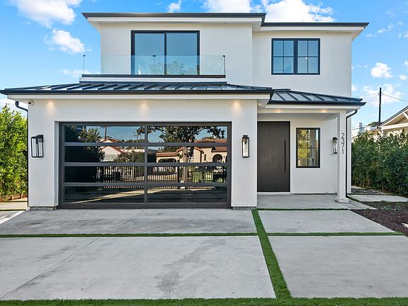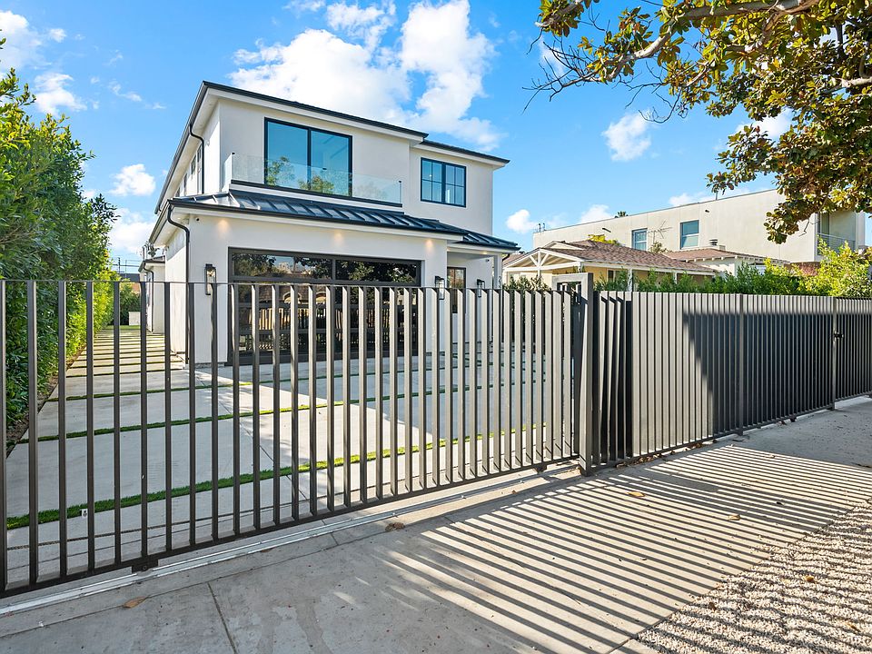 Brand-new 5-bed, 4.5-bath Modern Farmhouse brimming with natural light and contemporary elegance. The beautifully gated front yard features an automatic driveway gate and a passcode-protected walkway leading to a covered front porch. Inside, the formal entry and sitting area open to a spacious, light-filled floor plan. The great room boasts a sleek linear fireplace set against a striking marble wall, a chic wine display, and a dining area with sliding doors leading to the side yard. The modern kitchen is a showstopper, featuring quartz countertops, stainless steel appliances, a gas range with a pot filler, and abundant storage. The space seamlessly flows into a large backyard with a low-maintenance turf lawn, a built-in fire pit, and a BBQ area perfect for entertaining. The first floor includes a guest bedroom with an ensuite bath, a powder room, and a stunning floating staircase with a floor-to-ceiling window that floods the space with natural light. Upstairs, you'll find four additional bedrooms. Two front-facing bedrooms offer treetop and city views, one of which features a private balcony. Another bedroom includes an ensuite bath, while the luxurious primary suite boasts a custom walk-in closet, sliding doors to a private balcony, and a spa-inspired bathroom with dual sinks, a custom-tiled shower, a freestanding spa tub, and ample natural light. Additional highlights include hardwood floors throughout, dual-zone AC/heating, custom closets in every room, and wiring for sound and security cameras. Located in the highly sought-after Westwood Charter School district. Be the first to call this stunning property home! Available the first week of February. Tenant Pays All Utilities. Landlord Pays Gardening. Renters Insurance Required.