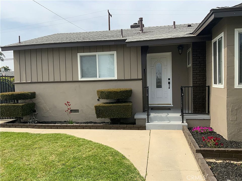 This remodeled corner lot is located in a beautiful area in La Habra, within walking distance of Costco. The house features a new kitchen with appliances including a 5-burner stove, microwave, dishwasher, and fridge. It also has laminate flooring throughout, fans in all bedrooms and dining areas, recessed lighting, a stunning fireplace, and two remodeled bathrooms with tiled floors, tile showers, and new vanities. The interior has texture-coated and painted walls, and the block wall is heightened for privacy. All rooms, including the dining room, have new paint. The exterior of the house is freshly painted with upgraded landscaping. It's a must-see to appreciate! No Court Confirmation Ready to Sell