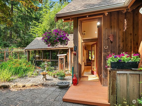 This custom-built home is nestled in 5 acres of verdant forests on desirable North Maury. The spacious home is full of inspiring details such as solid wood beams, wood-paneled ceilings, and clear fir trim. The smart layout features a main floor primary ensuite with office, a large and open remodeled kitchen, and an upper floor with two bedrooms and a full bathroom. It is designed to bring the outdoors in with great access to a serene back deck, 25 foot window wall, and a light-filled sunroom off of the kitchen. The outdoor amenities add to the charm and include a mature orchard, garden area, and large 3-car garage. Discover Northwest living at its best with nearby whale watching at Point Robinson Beach and hiking in Maury Marine Park.