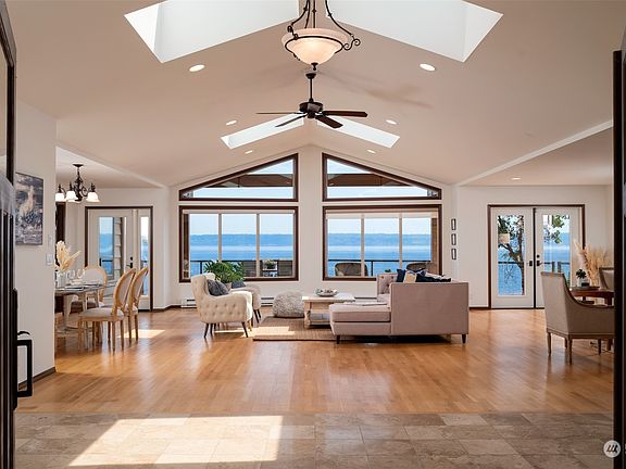 With Awe-Inspiring Views of Puget Sound-from Mt.Baker, the Cascades to Mt.Rainier, this 2-acre Waterfront Estate offers 3,000+ sf. of one-story living w/a separate 1124 sf. ADU rental. An expansive great room anchors light-filled spaces for dining, entertaining & relaxing. Daydream on the sunny deck & soak in the marine life & ever-changing boating activity. North wing w/Chef's kitchen & eating area, 2 bedrooms, full bath & laundry. South wing's Primary Suite offers breathtaking views, spa bath & walk-in closet. A half bath, flex space & office complete this comfortable home. The Charming 2 bedroom, 1.5 bath 1124 sf. ADU enjoys water views as well! Live the dreamy beach lifestyle just minutes to Kingston & both ferries to Edmonds & Seattle!