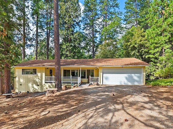 This 2-bedroom, 1.5-bath home is tucked into the trees on a cul-de-sac, offering privacy, forest views, and plenty of natural light. A wall of windows brightens the living and dining areas, while the kitchen offers ample storage and functional counter space. The spacious laundry room has potential for a mudroom or pantry, and a bonus room works as an office, playroom, or creative space. Enjoy the covered front porch or relax on the oversized deck overlooking the 10,488 sq ft lot. The property includes a 2-car garage with lofted storage, RV/boat parking, room for garden space, an owned propane tank, and an inverter generator. Just minutes from downtown Twain Harte, you’ll have access to restaurants, shopping, community events, skiing at Dodge Ridge, boating at Pinecrest Lake, Yosemite, and countless nearby lakes and rivers. A little paint and a few easy updates would go a long way in making this place shine. Whether a full-time home or a mountain retreat, this property makes it easy to enjoy all Twain Harte has to offer.