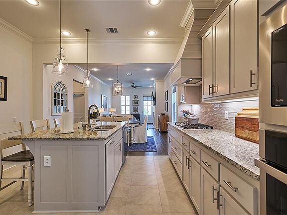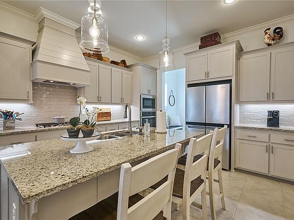 The brick steps and the ditinquished columns on the front porch lead to this quaint, Cottage style home. Come in to an open concept living room with gas fireplace, to a granite countertop kitchen. The Primary bedroom with double vanity sinks is located at the rear of the home, while two bedrooms towards the front.