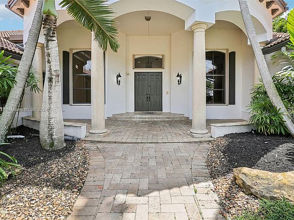 Step into your own tropical oasis with this stunning backyard retreat! Featuring a shimmering pool, lush greenery, and serene water views, your outdoor space is perfectly crafted for relaxation and entertainment. Dive into a life of luxury in this exquisite setting, Tankless water heater, beautiful Jerusalem stone floors in all main living areas, office & one bedroom, 6/6.5+office, plantation shutters,Whole house generator, accordion shutters, gas stove, double oven, bread warmer, microwave.