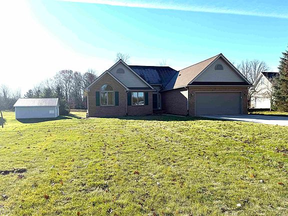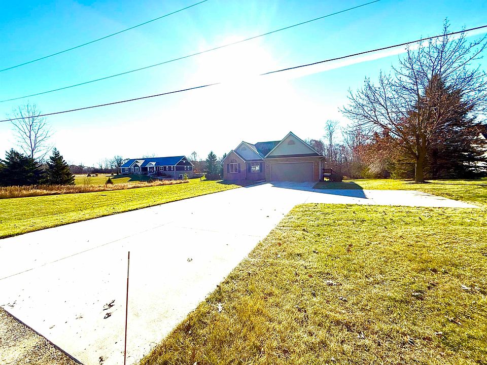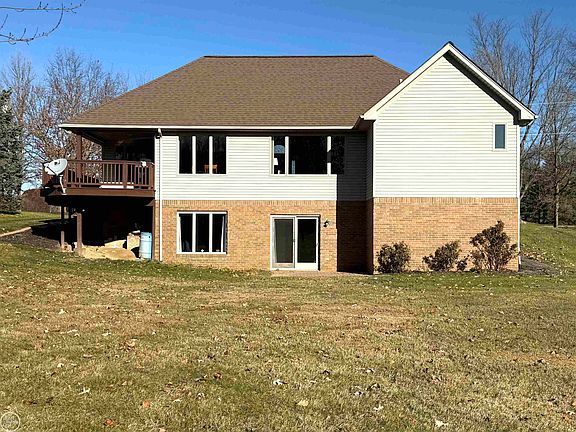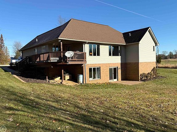 RARE & AMAZING FIND!! 2 rolling, well maintained acres with awesome view from house overlooking the property, (165x496), 30x40 pole barn w/cement floor, electricity, roll up door w/opener & metal roof. Home has open floor plan w/high cathedral ceiling in great room, large windows & loads of natural light, open oak staircase leads to finished walk-out basement w/rec area, office/bedroom & 3rd full bath w/shower stall, the kitchen is oak cabinets w/under cab. lighting, snack bar w/room for 3 stools, stainless steel fridge & dishwasher, stacked washer/dryer in 1st floor laundry, breakfast nook area is open to kitchen & great room w/door leading to private "raised" deck, primary bedroom w/tray ceiling, walk-in closet, primary bath w/skylight, granite counters, ceramic tile stall shower, 2nd bdrm w/vaulted ceiling & plant shelf above, Andersen windows, C/A, whole house fan, Honeywell security system, owned water softener, cement driveway w/side turn around for extra parking, natural gas, only 5 minutes from downtown Armada, shows well