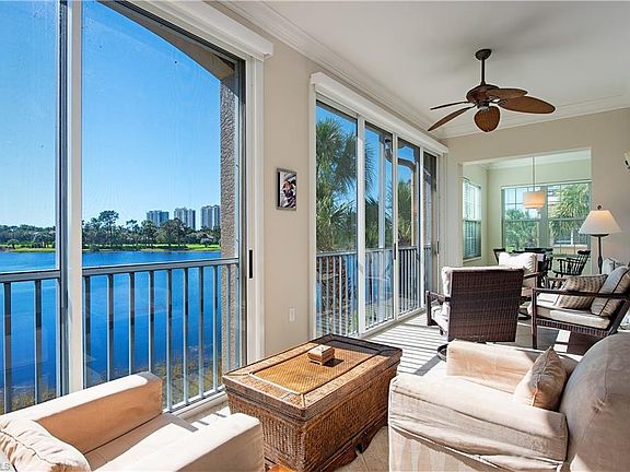 2025 price reductions of $45K Experience the best of luxury living in this expansive 2nd-level coach home in the coveted Merano community of The Colony Golf & Bay Club. Offering over 2,700 square feet of living space, this home features 3 bedrooms, a den, and a versatile flex room perfect for a home office. Thoughtfully designed, the split-bedroom layout ensures privacy for all. Enjoy breathtaking long lake views from the glass-enclosed lanai, primary suite, main living area, and eat-in kitchen. The southern exposure fills the home with natural light, enhanced by the unique lanai that seamlessly integrates indoor and outdoor living. The current owners have meticulously maintained and upgraded the home, including a new 5-ton HVAC system installed in 2023, newer oven, range, and microwave, as well as the replacement of 14 movable windows with impact-resistant low-E energy shield windows in 2021. Additional highlights include a private two-car attached garage for secure storage and a convenient private elevator making daily living effortless. Merano is undergoing a stunning transformation, with all-new contemporary flat tile roofs, updated exterior paint, renovated community amenities including restrooms and pool furniture, along with new gutters, downspouts, and exterior lighting. Residents of The Colony enjoy an array of exclusive amenities, such as the recently reimagined Bay Club with waterfront dining on two levels, a kayak and canoe park, a fitness center, tennis and pickleball, as well as access to a private 34-acre island beach park. Optional golf or sports memberships at The Colony Golf Club for those seeking an active lifestyle.