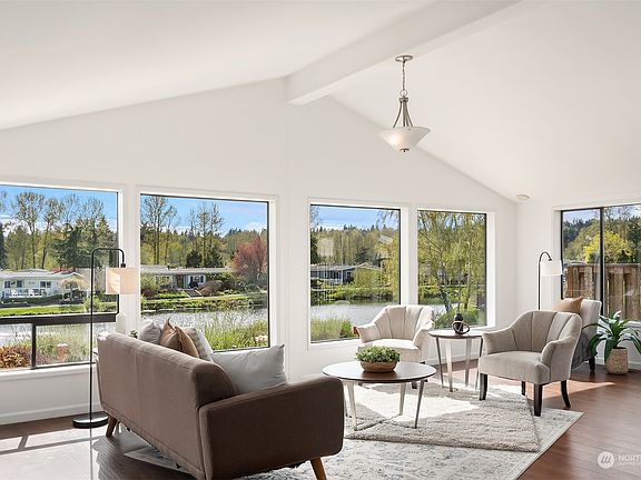 Welcome to your dream waterfront property at Wandering Creek, a 55+ community in Bothell. Enjoy the breathtaking lake views with a southwest facing exposure. This rambler boasts 1990 sq ft, 3 bedrooms and 2 full baths. The skylights add natural light and warmth to the house. Its attached 2 car garage provides ample storage space, including a pulldown stair to the upper storage. The lakeside deck is ready to receive your personal touch to enjoy the most amazing sunsets. The Community offers you a clubhouse, lake, trails and greenbelt, all you need to live your best life. Don't miss out on this once-in-a-lifetime opportunity to own your own slice of paradise.