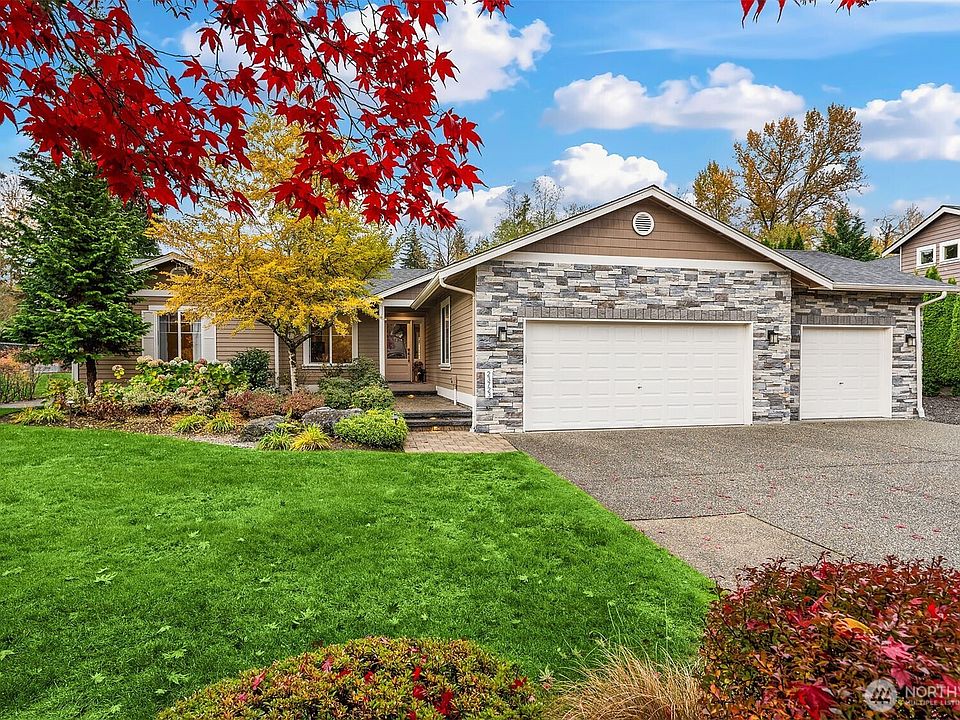 Meticulously maintained rambler on a quiet cul-de-sac in the heart of Echo Lake. Open concept great room flows seamlessly into the chef's kitchen & dining room, providing for year round light and perfect for entertaining. Dual French doors take you to a park-like 3/4 acre property with covered and uncovered patio, sprinklers, and landscape lighting. Secluded primary suite with five-piece bath & walk-in closet. Generous secondary bedrooms/ WFH office. Steps from Echo lake and multiple hiking trails. Minutes away from wineries, State Fairgrounds, and DT Woodinville.