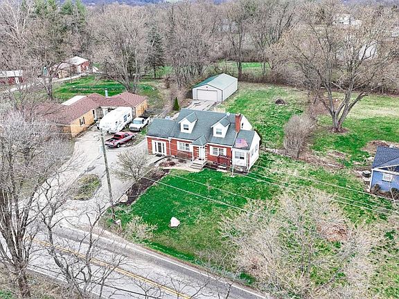 Location! Location! Brick cape cod in Bright, Indiana. Features 3 bedrooms and 2 full bathrooms as well as a first floor study that could be a potential 4th bedroom and an attached all seasons room. Character and charm throughout. Hardwood floors in dining room and underneath carpet in living room and first floor bedroom. Driveway leading to a large 20x40 detached pole barn with electric and concrete floor ready for all your projects and vehicles. Updated kitchen with stainless steel appliances and lvt flooring. Walkout to spacious deck leading to large fenced in backyard, First floor laundry room, Full unfinished basement. Property is an estate and to be sold as is, cash or conventional only.
