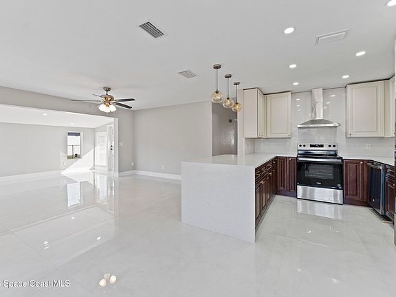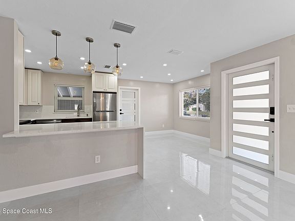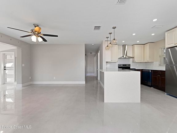 Perfect location and lots of charm for this FULLY UPDATED 3 BR/2BA home in Sherwood Park. Updates include brand new kitchen, 2 new bathrooms, tile floors, new doors and windows...the list goes on! Open floor plan w/ living room and separate family room, creating a bright and spacious atmosphere. Fully fenced backyard and covered patio are perfect for outdoor enjoyment. Oversized carport has 2 storage rooms, and new washer and dryer. Centrally located just minutes from schools, shopping, restaurants, Wickham Park, Eastern FL State College, The King Center, Patrick Space Force Base, and the beaches! Pets are welcome!