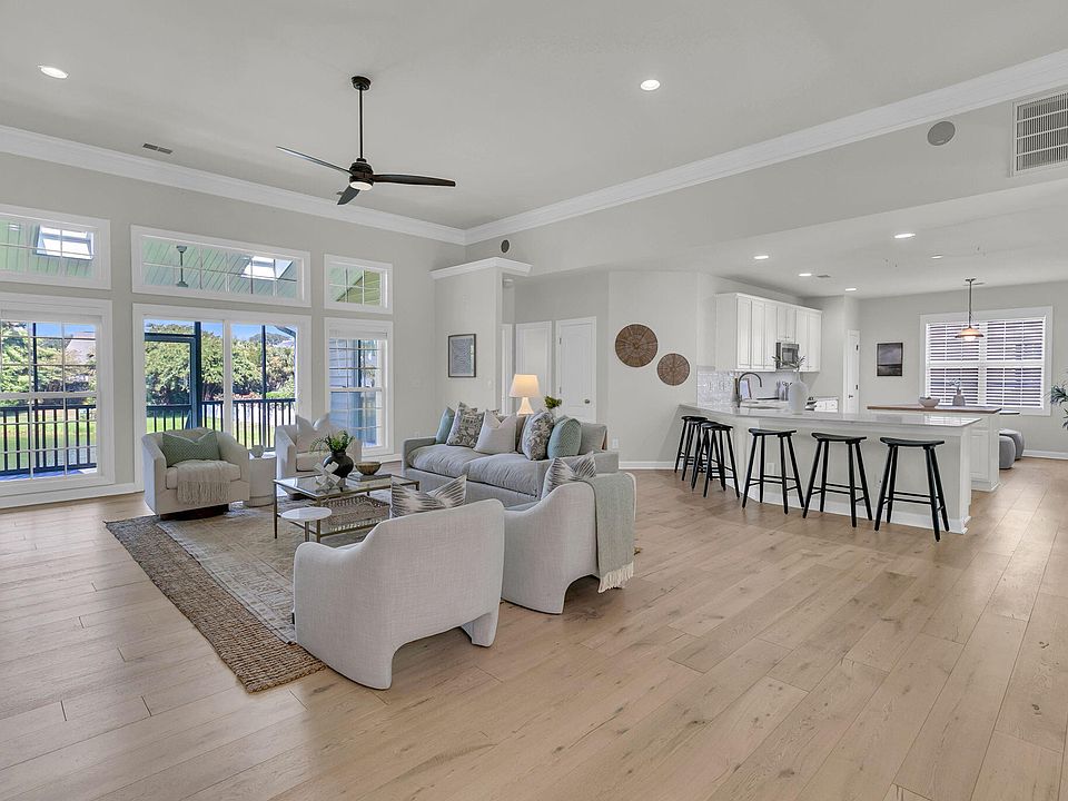 An amazing opportunity for true one-level living! This spacious home features generous room sizes, high ceilings & a flexible open layout. The kitchen is a standout with white quartz counters, new tile backsplash, farmhouse faucet, counter seating, & abundant cabinet space. Enjoy both a casual eat-in area & a formal dining room. A separate office with a closet, offers versatility as a 4th bedroom or second living space. The private primary suite opens to the screened porch & is thoughtfully separated from the other bedrooms. Enjoy peaceful pond views & the wildlife from your cul-de-sac lot. Additional highlights include updated systems, recessed lighting, an encapsulated crawlspace, a laundry room & a garage with loft storage. Walk to Target & enjoy quick access to the Isle of Palms!