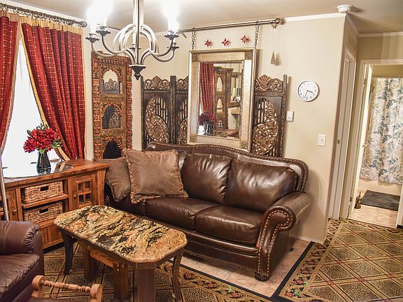 Beautiful property along the Red River in Questa NM! The property features a two bedroom, two bath mobile home, covered by a larger metal roof to protect the home. The front deck is 15X50. In addition, there are 2 metal/concrete garages approximately 30 X 50 each, 2 electric service poles, city water and one water well. The property is completely fenced in, except on the river, where you can enjoy approximately 300 feet of beautiful river frontage. Yard is graveled in for very low maintenance.