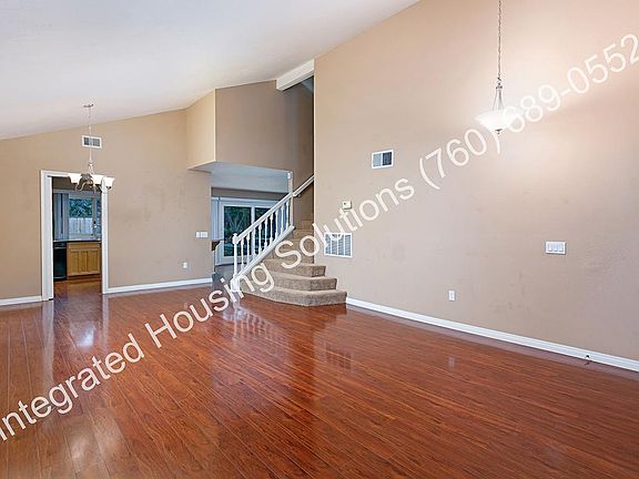 Wonderful Escondido Hills home in a quiet neighborhood at the end of a cul de sac. Very Private 3 bedroom 2.5 baths, with 1744 Square feet. This house has been remodeled. Granite counter tops throughout and nice new cabinets in kitchen. Open Floor plan with wood laminate flooring, neutral colors and spacious family room with fireplace. All bedrooms are upstairs and have walk in closets. Awesome master with gigantic walk in closet, shower and large bathtub. This home has air conditioning, and a spacious two car garage. Nice grassy backyard and nearby to walking trails, greenbelts and community pool. Appliances Included are Stove, Disposal, Dishwasher and Microwave. Home has furnace and air conditioning. *Tenant is responsible for their own Refrigerator, Washer and Dryer. Complex Features: numerous hiking and walking trails, open fields, 2 common area pools, one spa and expansive common area. Terms: Available for immediate move in Tenant to pay for all utilities No pets please Tenants must carry renter s insurance Please call to set up an appointment to view the inside Security Deposit & first months move in funds must be in form of a cashier's check or money order. Terms and rates are subject to change without notice. Advertisement is deemed to be true but tenant to verify all before move in. All information is subject to change. Please contact Integrated Housing Solutions Inc. for more information and to schedule a viewing. Managed by Integrated Housing Solutions Inc *Tenant is responsible for their own Refrigerator, Washer and Dryer. * We do not accept Zillow Applications so tenant will have to apply for home through our website. * Due to high volume of emails, please call to set up showings to see inside of house. Managed by Integrated Housing Solutions Inc BRE #01395786