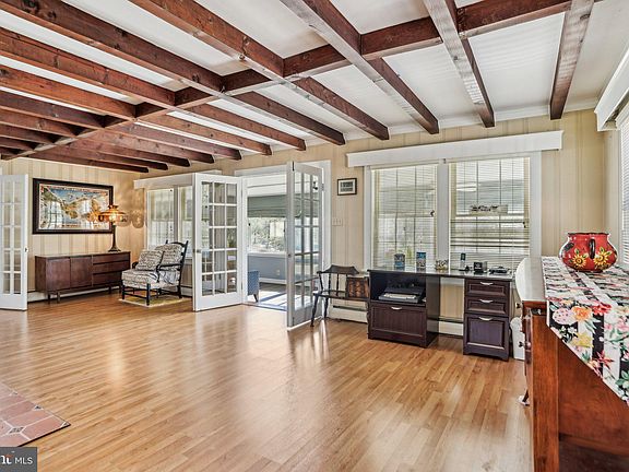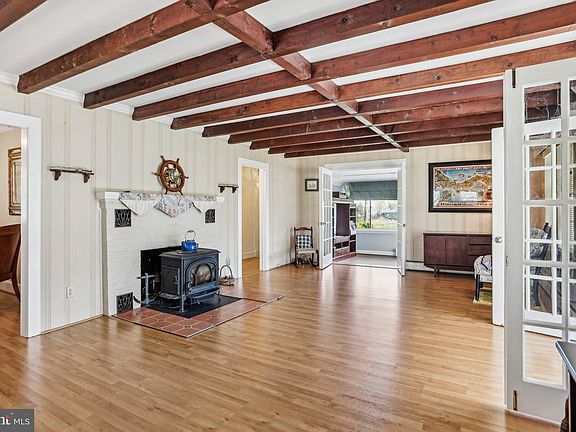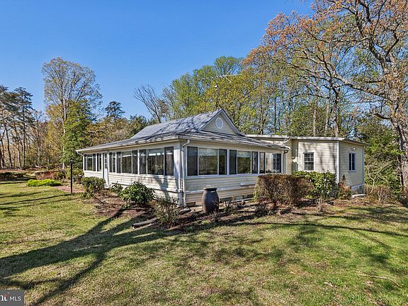Nestled on 3.56 acres with approximately 1000 ft of waterfront on the southwest side of Kingston Creek, this unique 1940s waterfront property presents a charming rambler offering deep, protected waterfront just minutes from the Patuxent River. The beautifully landscaped private setting boasts fantastic views of the creek and river from all sides. Enhancements include a new wood stove in 2023, updated some flooring, fresh paint, and the addition of mini splits. The home also features an updated primary bath. Outside, a 60 ft pier with a 12 ft "L" and 4 slips, accommodating up to a 40' boat with an 8' MLW, complements the beautiful yard and views of the water. Inside, the updated kitchen offers an island, breakfast area, beamed ceiling, and brick fireplace with heatilators, while the dining and living rooms feature hardwood floors and another brick fireplace. A wrap-around 4 seasons room and the master bedroom provide further water views. Bedroom #3, though smaller, offers a water view and built-ins suitable for an office. A large brick patio overlooks lovely gardens with numerous flower beds, mature azaleas, and unique trees and shrubs. The property enjoys easy access to Solomons Island and Patuxent Naval Base.