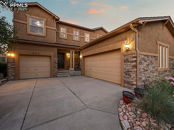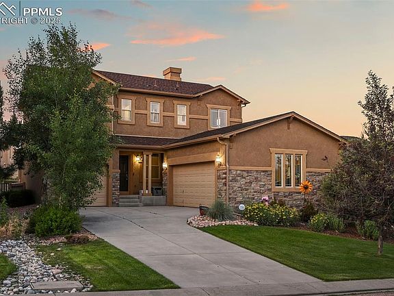 Experience the best of Flying Horse living with this rare 5-bed, 5-bath gem just minutes from the Club, Discovery Canyon Campus, and everyday essentials. Tucked into a scenic neighborhood with city and Pikes Peak views, this well-maintained one-owner home offers space, privacy, and connection to everything that makes Northern Colorado Springs so desirable. Step inside to find a smart, functional layout that includes a dedicated main-level office, a separate formal dining room, and a spacious kitchen that opens to the living room—ideal for everyday living and relaxed entertaining. From here, enjoy easy access to a covered patio and a fully landscaped front- and back-yard with two HOA-approved storage sheds. Upstairs, you’ll find four well-appointed bedrooms, including two with en-suite bathrooms—a rare feature in this neighborhood. The primary suite offers a peaceful retreat with a luxurious 5-piece bath and walk-in closet. A finished basement adds flexible living space, complemented by a ¾ bath, perfect for guests or a media room. The oversized two-car garage is paired with a separate third-car bay, ideal for storage, outdoor gear, or hobby use. A Ring security system is already in place, and the home is just one block from popular Barefoot Park, as well as greenbelts and trails that wind throughout the community. Walk to King Soopers, restaurants, Discovery Canyon Campus, and the Flying Horse Country Club. With easy access to I-25 and Highway 83, commuting to Castle Rock, Denver, DIA, or Downtown Colorado Springs is a breeze. This is more than a house—it’s a well-cared-for home in one of the most sought-after neighborhoods in 80921.