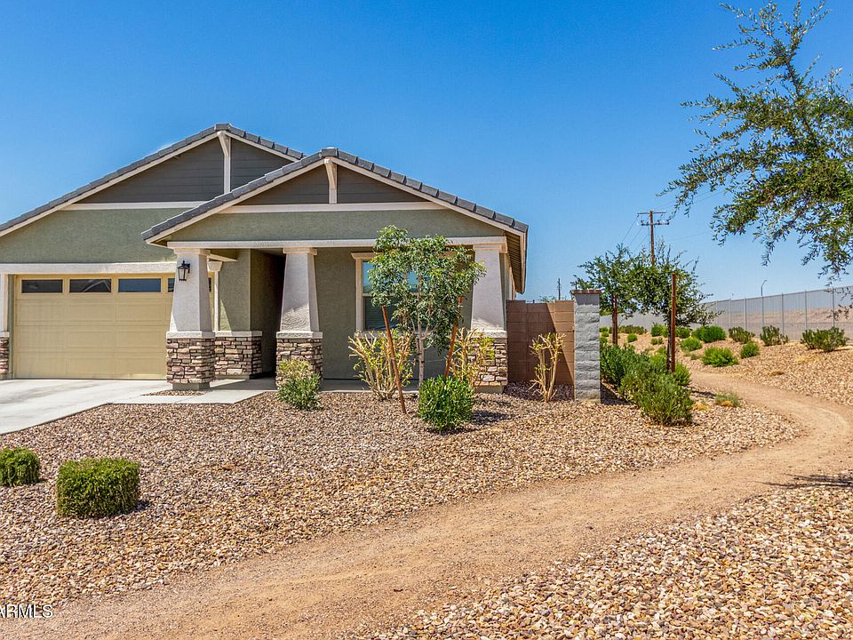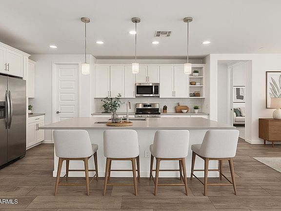 Seller to contribute $10,000 towards buyer's closing costs or rate buy-down at accepted offer. Built in 2022, this 4-bed, 3-bath single-story home offers 2,192 sq ft on a CORNER lot in a GATED community. Open layout connects kitchen, great room, and dining area. Split floor plan provides privacy, primary suite at the rear and a front bedroom with ensuite, ideal for guests or multigenerational living. Features include a spacious kitchen, covered patio, entry courtyard, smart thermostat, dual-pane low-E windows, and ENERGY STAR® certification. Exterior tankless gas water heater included. Community amenities: gated access, playgrounds, green belts, half-court basketball, outdoor fireplace, and ping pong tables. Located in Chandler Unified School District, near shopping, dining, entertainment