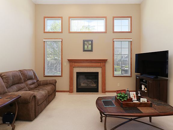 One owner story and a half in Heather Ridge. The large first floor primary suite includes a walk-in closet, ensuite bath with whirlpool tub and walk-in shower. Laundry is conveniently located near the kitchen. The first floor also includes an eat-in kitchen, dining room currently used as an office, half bath, family room with gas fireplace. The second floor is complete with 3 bedrooms, full bath, and a hall closet with laundry hook-ups. The unfinished basement has an egress window and bath rough-in. The 2 car garage has a bump-out for extra storage. Water heater replaced in 2022. Roof in 2023.