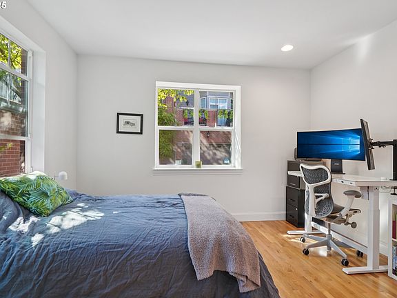 OPEN HOUSE ON SATURDAY THE 20TH is 1pm to 3pm...not 11-1. Welcome to Quimby Townhomes – a gated community offering luxury, privacy, and prime NW Portland living! This stunning SW-facing corner unit boasts 3 spacious bedrooms, each with its own private bathroom. Enjoy abundant natural light, high ceilings, and a cozy gas fireplace. The oversized double garage includes room for EV charging and a lift for extra storage. Recent updates include a brand-new roof (2024), new HVAC system (2025), and exterior paint (2023). Inside, you'll find oak hardwood floors throughout, tile entry and laundry areas, and custom upgrades like Sunbrella shades, walk-in closet with vanity and recessed lighting, and new appliances (dishwasher, garage door opener). The deck off the dining room is perfect for entertaining. All just blocks from NW 23rd shops, parks, restaurants, and transit. Truly turnkey and move-in ready!